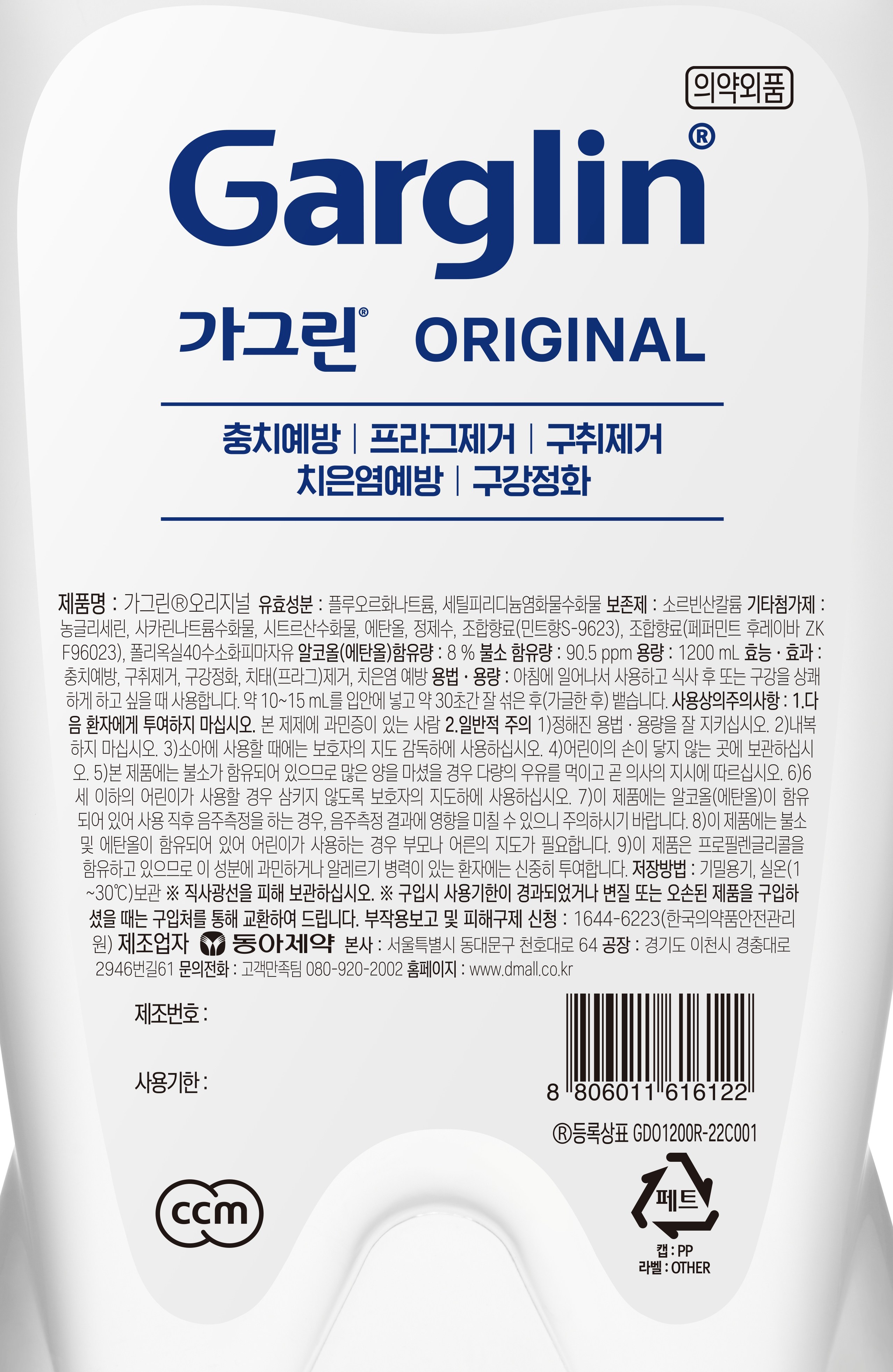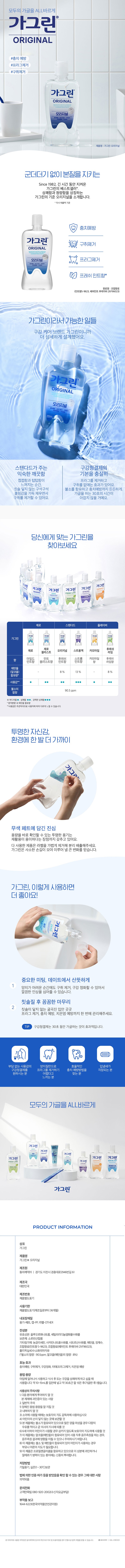| 품명 및 모델명 | 가그린 오리지널 | 인증/허가 사항 | 의약외품 |