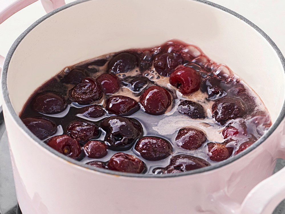 재료: 냉동 체리 450g, 설탕 170g, 레몬 1/2개