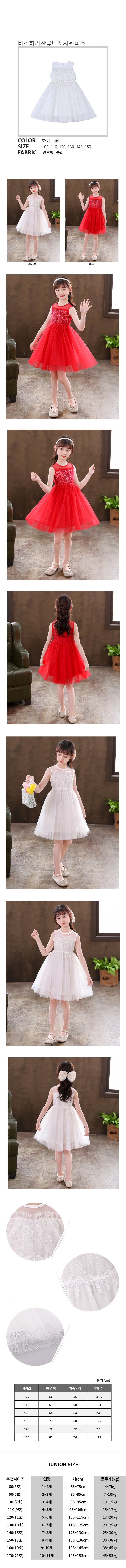 오렌지다몸 여아용 비즈 허리 잔꽃 나시 샤원피스