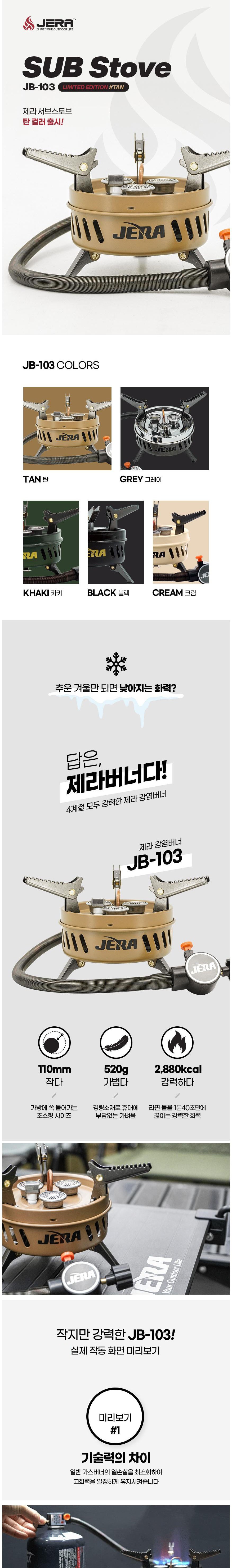 | 품명 및 모델명 | 이동식부탄연소기( 야외용 ) / JB-103-NEW | 인증/허가 사항 | 오909417 |