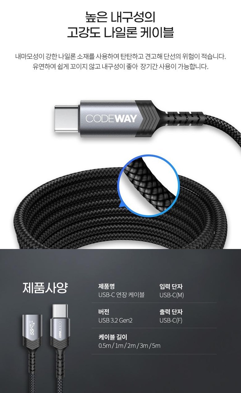 | 품명 및 모델명 | 코드웨이 USB C타입 3.2 GEN2 연장케이블 | 인증/허가 사항 | 해당 없음 |
