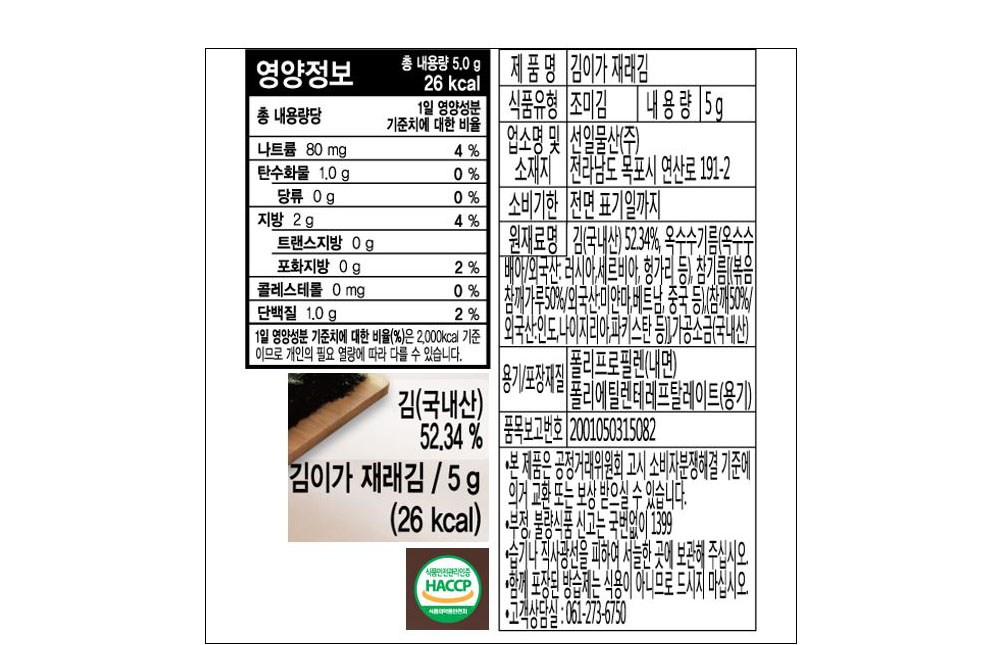 옛 맛을 고스란히 담아낸 재래김이에요. 바삭바삭한 식감과 고소한 맛이 좋아요. 경쾌하게 씹히는 소리까지 맛있지요. 재래김의 정겨운 맛을 즐겨보세요. 맛깔스러운 풍미로 입맛을 살려주는 반찬이랍니다.