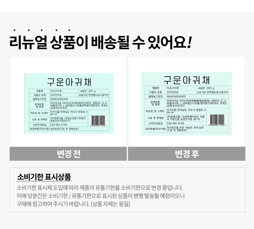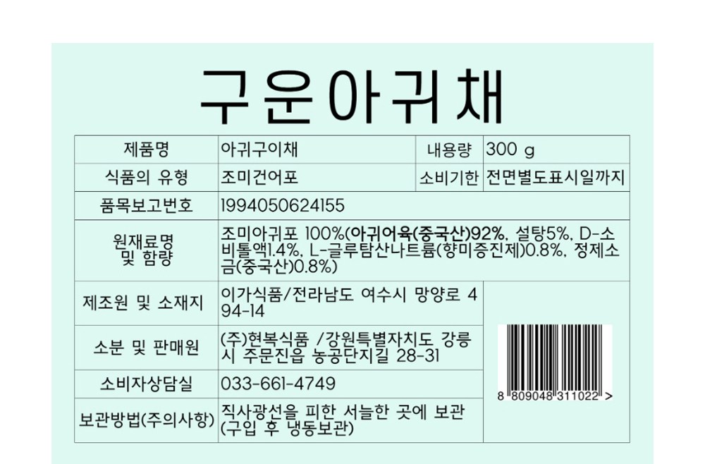 | 제품명 | 아귀구이채 | 식품의 유형 | 컨텐츠참조 |