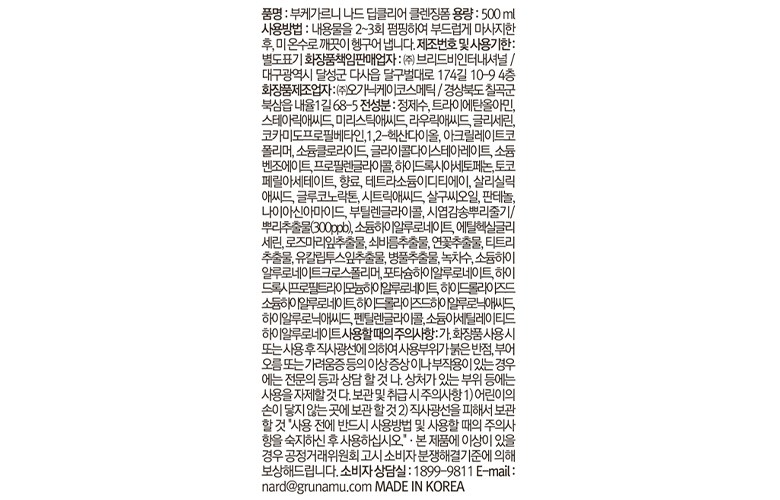 | 용량(중량) | 500ml | 제품 주요 사양 | 모든 피부용 |