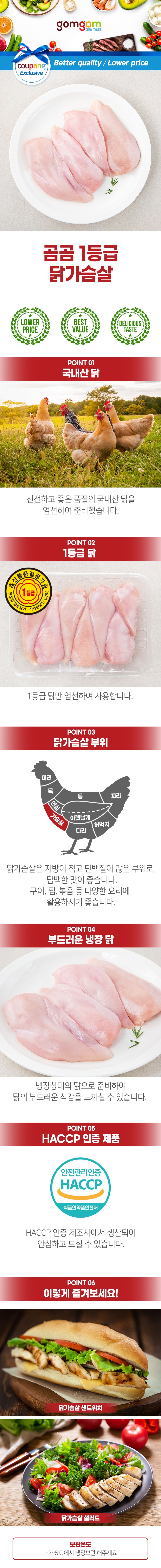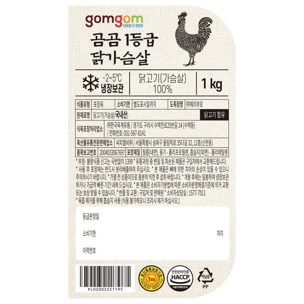 | 품목 또는 명칭 | 곰곰 1등급 닭가슴살 | 포장단위별 내용물의 용량(중량),수량,크기 | 1kg, 1개 |