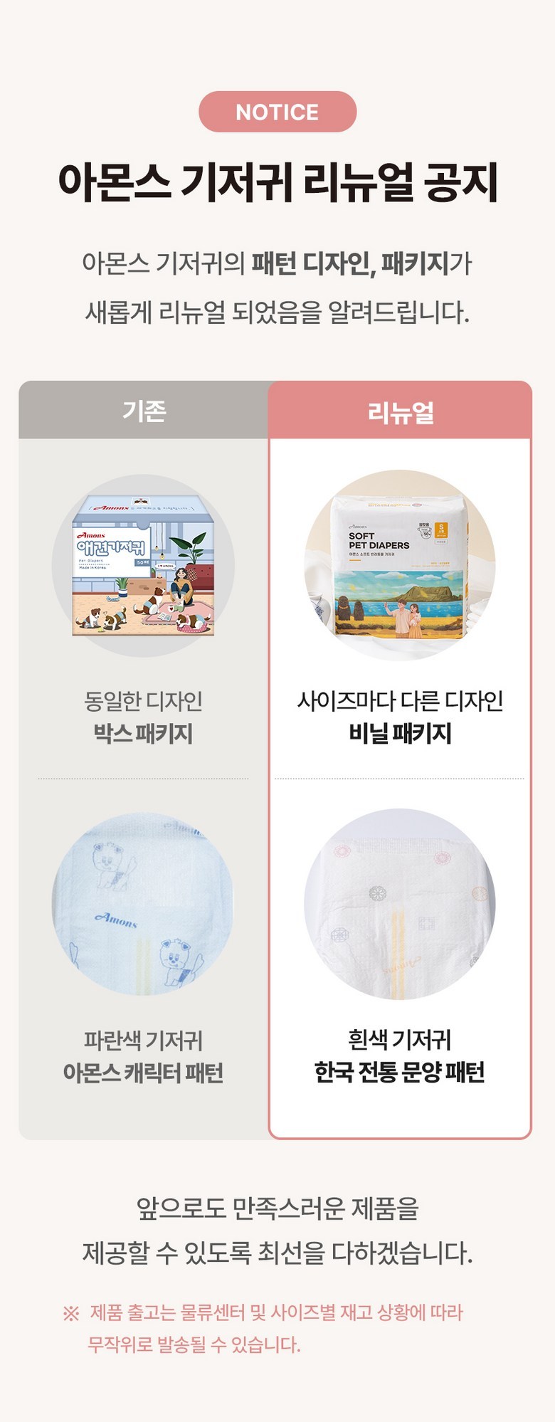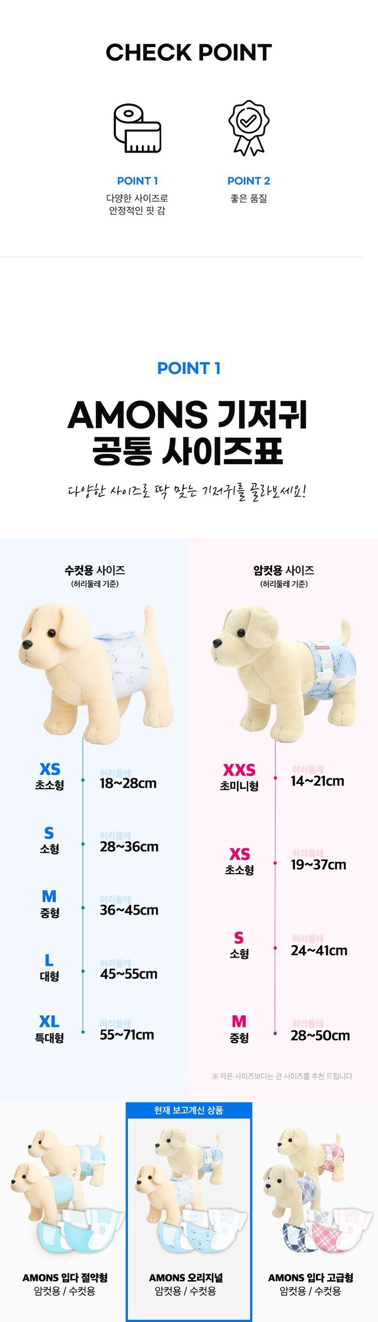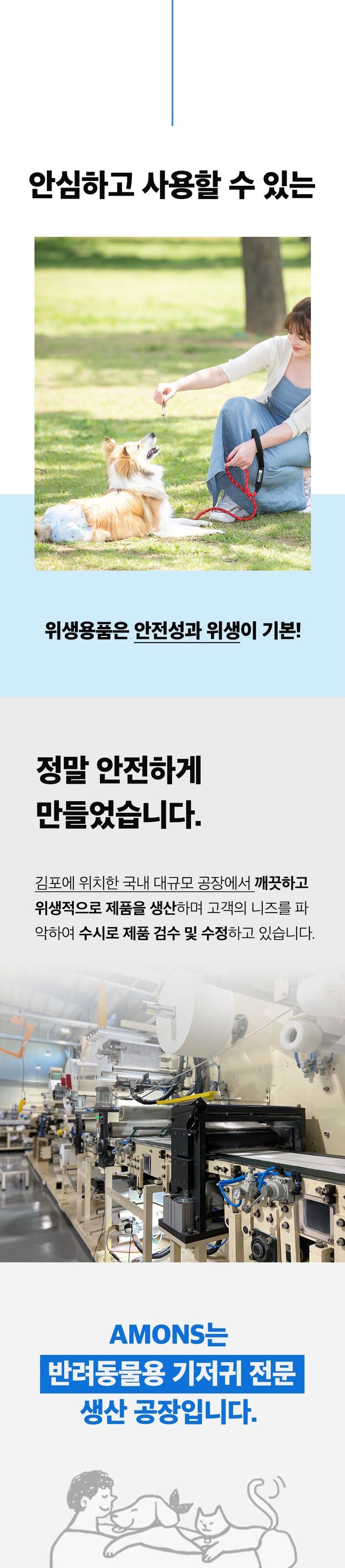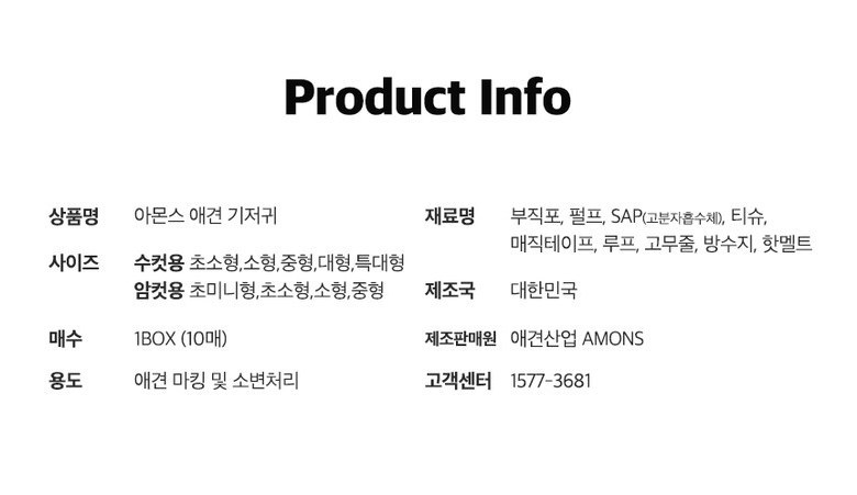 | 품명 및 모델명 | 아몬스 애견 기저귀 암컷용 | 인증/허가 사항 | 해당없음 |