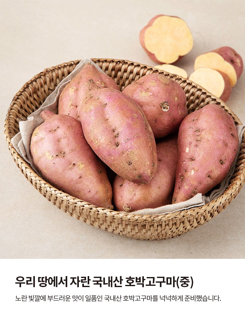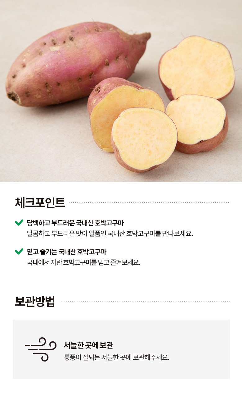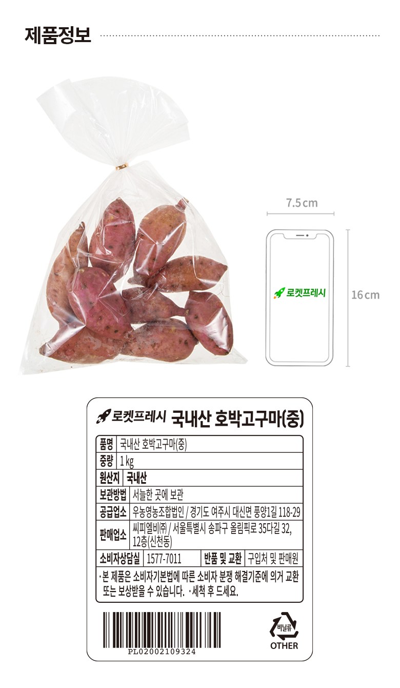 | 품목 또는 명칭 | 국내산 호박고구마 | 포장단위별 내용물의 용량(중량),수량,크기 | 1kgx1개 |