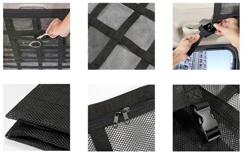 자동차 천장 카고 네트 메쉬 백은 질 좋은 폴리에스테르 메쉬 원단으로 되어 있어 휴대하기 편리합니다.