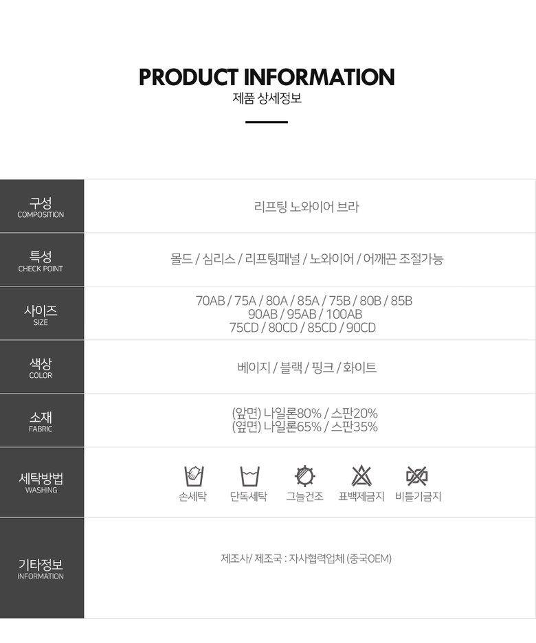 | 제조국 | 중국OEM | 세탁방법 및 취급시 주의사항 | 상품 상세페이지 참조 |