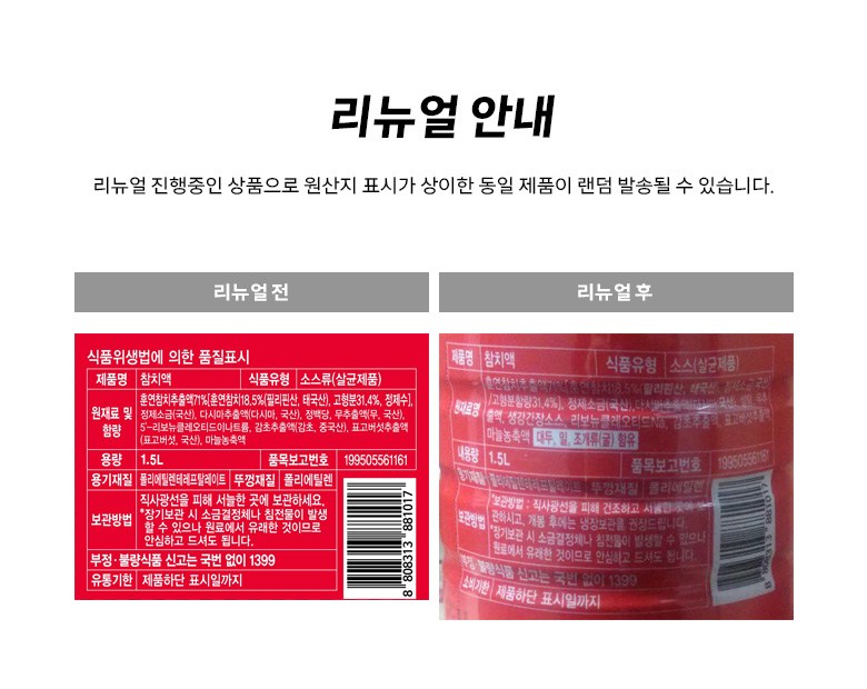 | 포장단위별 내용물의 용량(중량), 수량 | 1.5L x 2개,1개 | 원재료명 및 함량 | 컨텐츠 참조 |