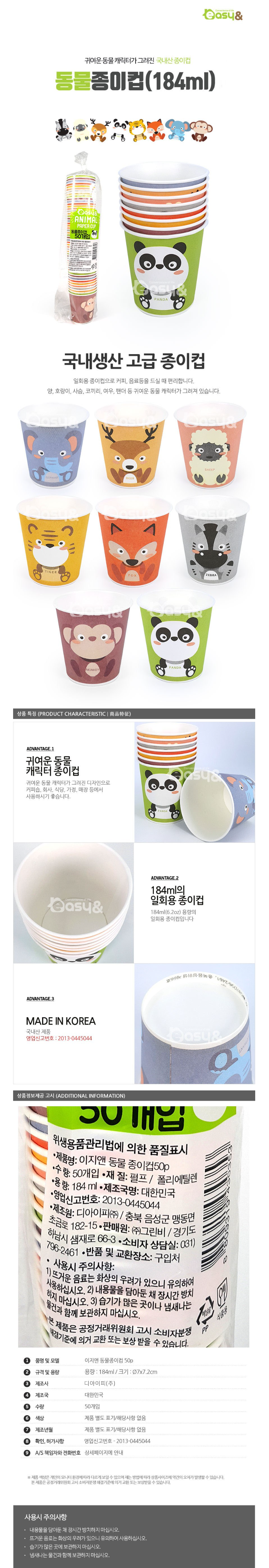 | 품명 및 모델명 | 이지앤 동물종이컵 | 인증/허가 사항 | 위생용품 |