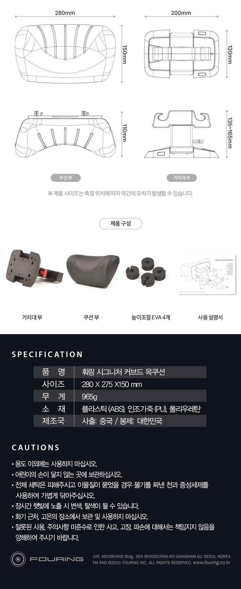 | 품명 및 모델명 | 훠링 시그니처 커브드 헤드레스트 차량용 목쿠션 | 동일모델 출시년월 | 업체미제공 |