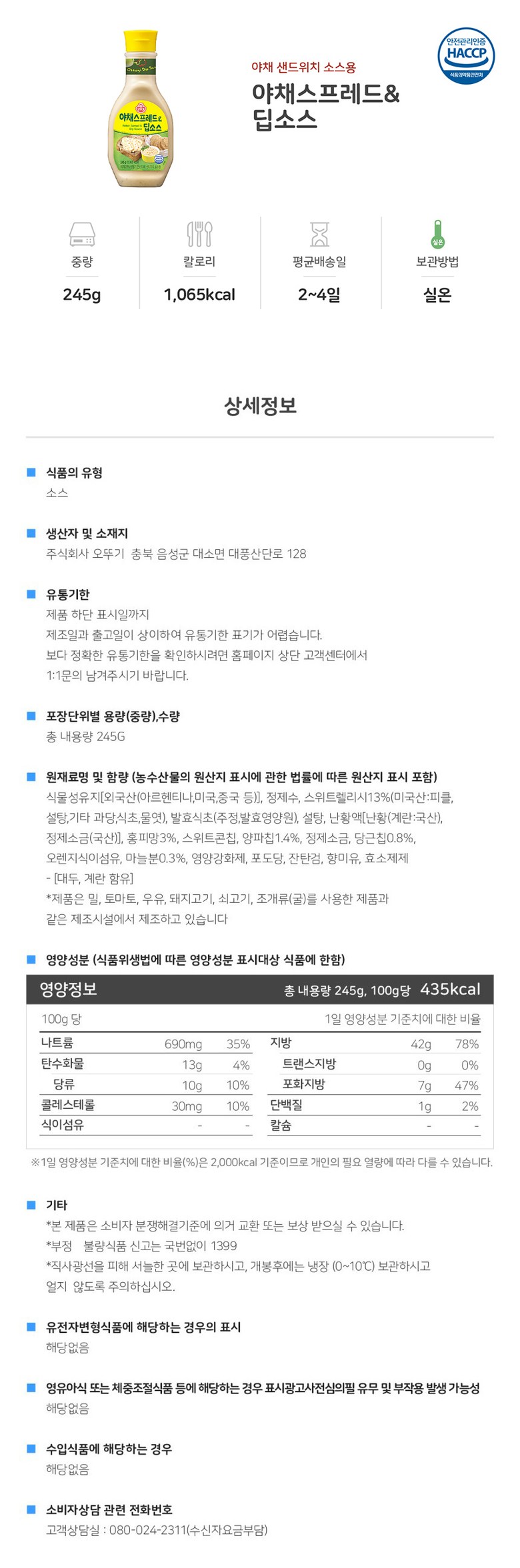 | 생산자 및 소재지 | 상품 상세페이지 참조 | 제조연월일, 소비기한 또는 품질유지기한 | 상품 상세페이지 참조 |