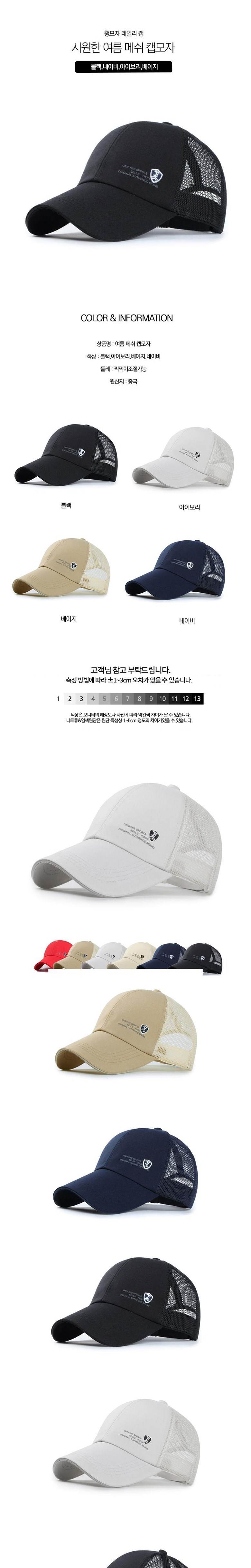 | 품명 및 모델명 | 여름 메쉬 캡모자 | KC 인증정보 | 해당없음 |