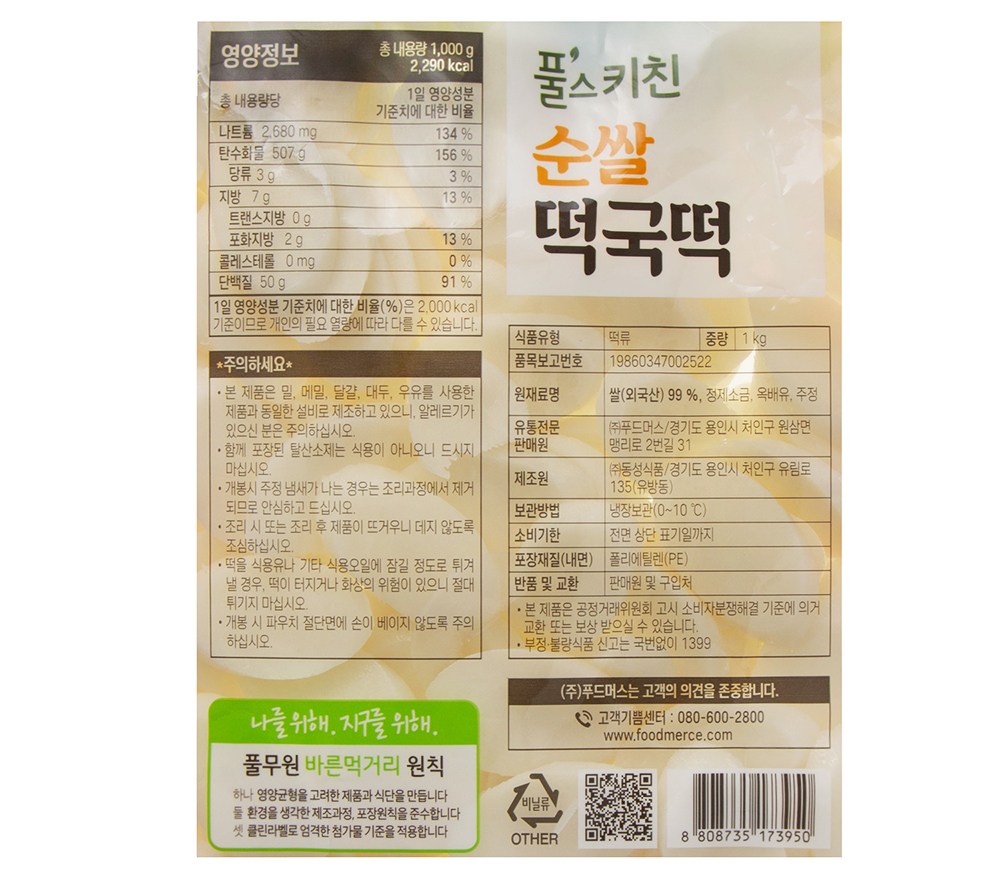 | 제품명 | 순쌀 떡국떡 | 식품의 유형 | 컨텐츠참조 |