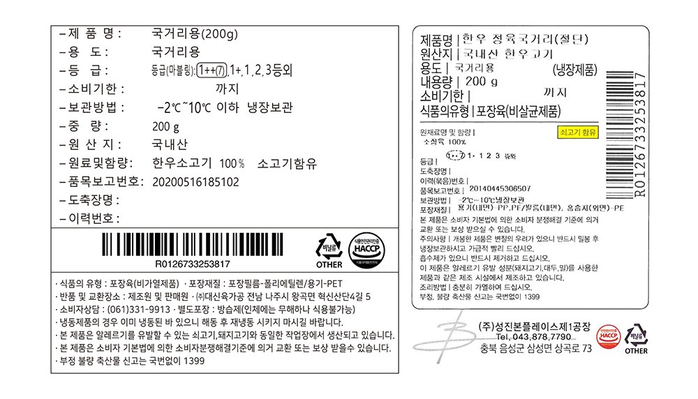 | 소비기한 또는 품질유지기한 | 소비기한(또는 유통기한) : 2026년 03월 23일 이거나 그 이후인 상품 | 세부 품목군별 표시사항 | 축산물 등급표시 : 1++등급(7) / 이력번호 표시유무 : 이력번호 표시제품임 |