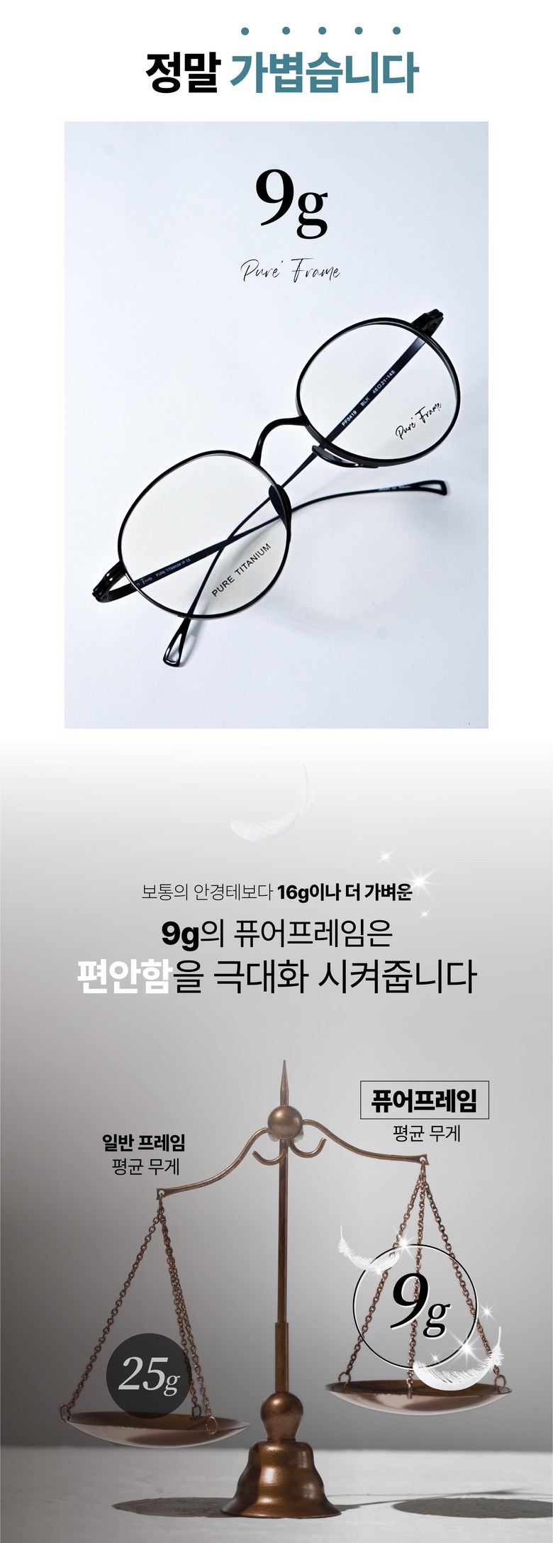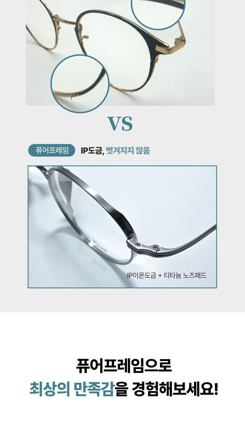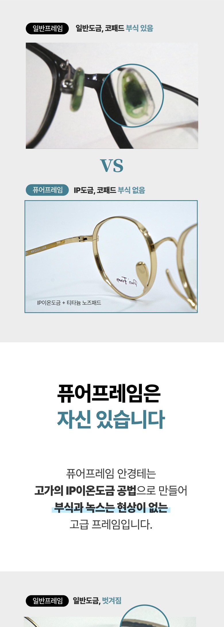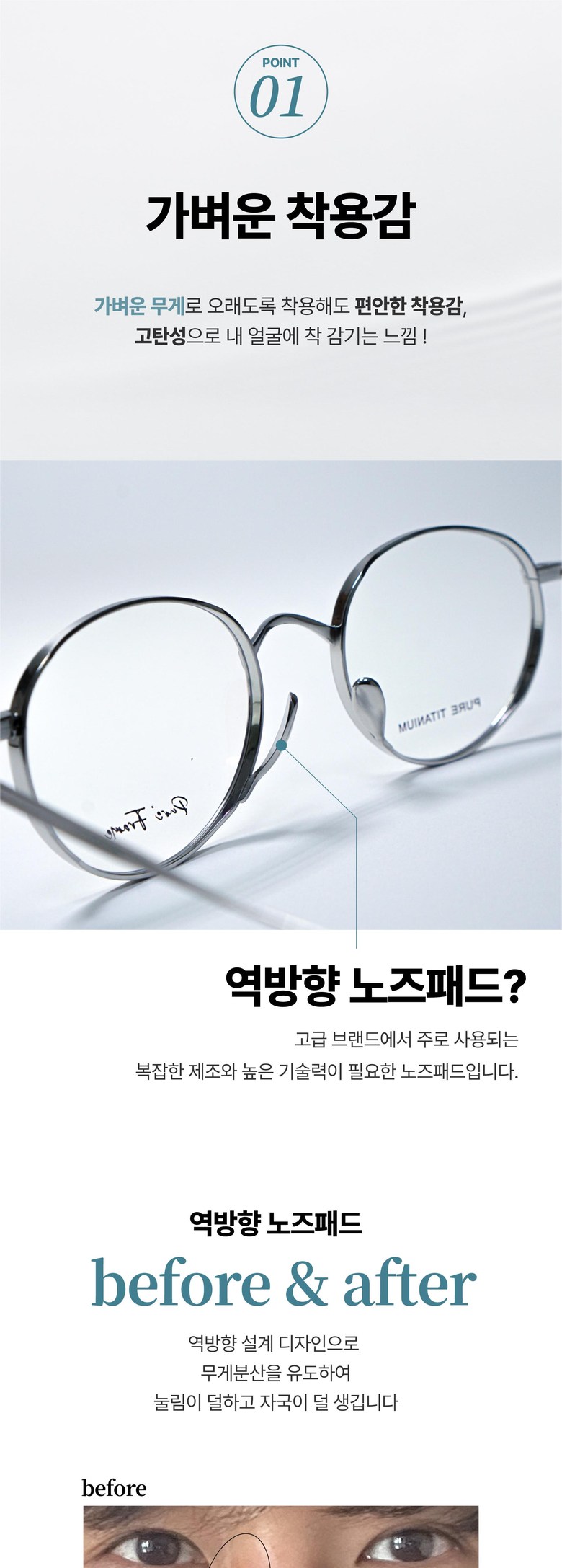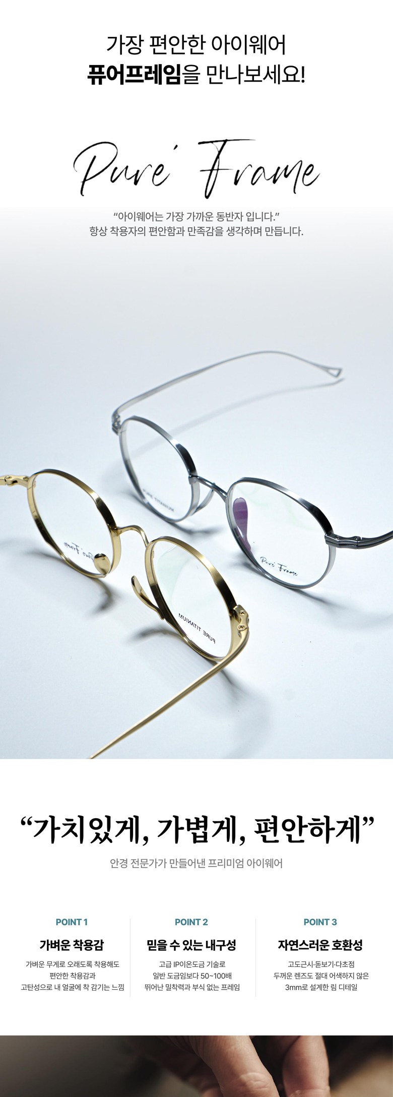 퓨어프레임 티타늄 안경테 역코받침패드 남자 여자 안경테