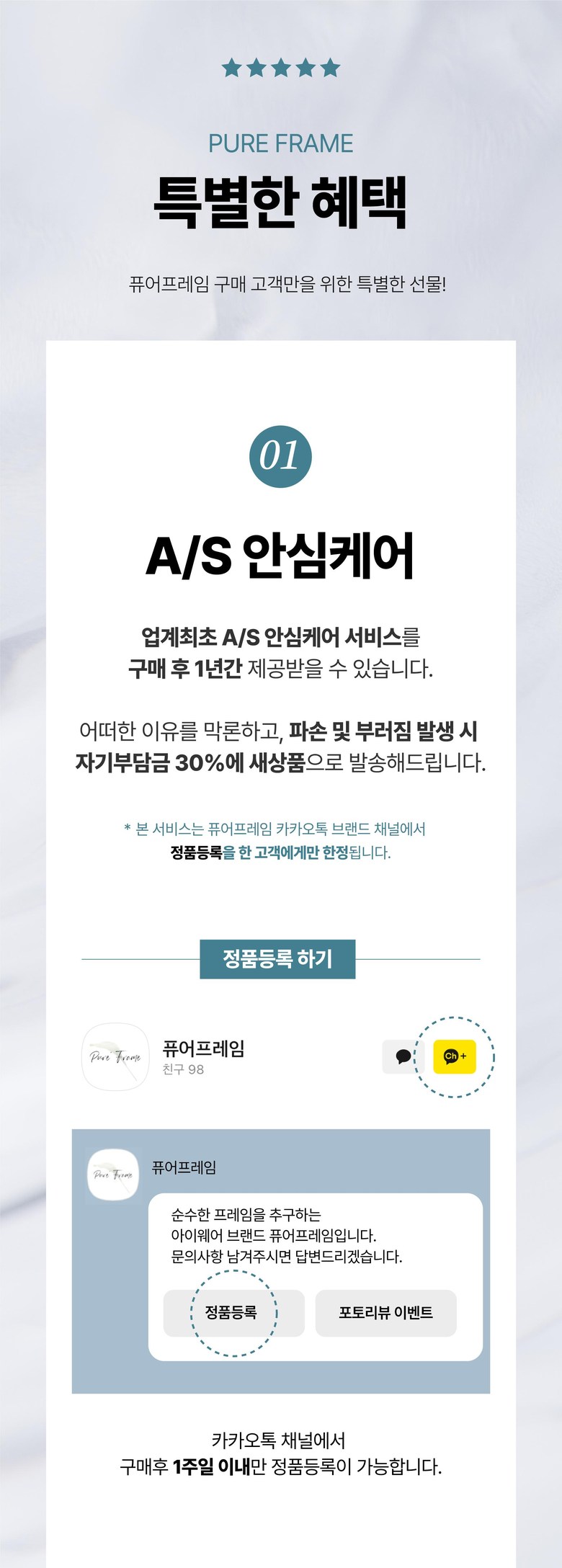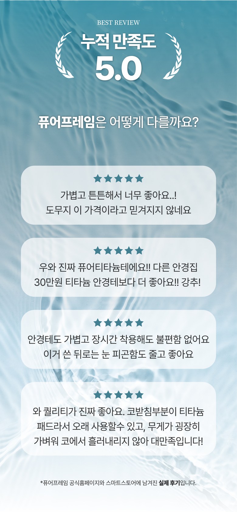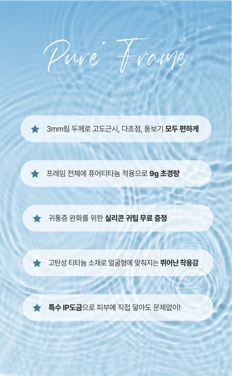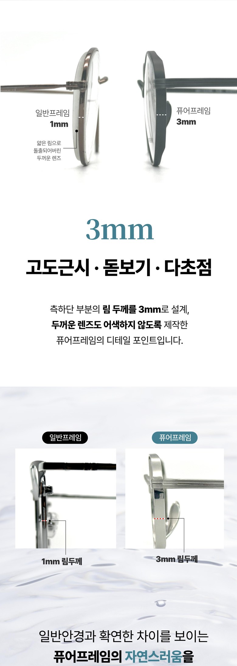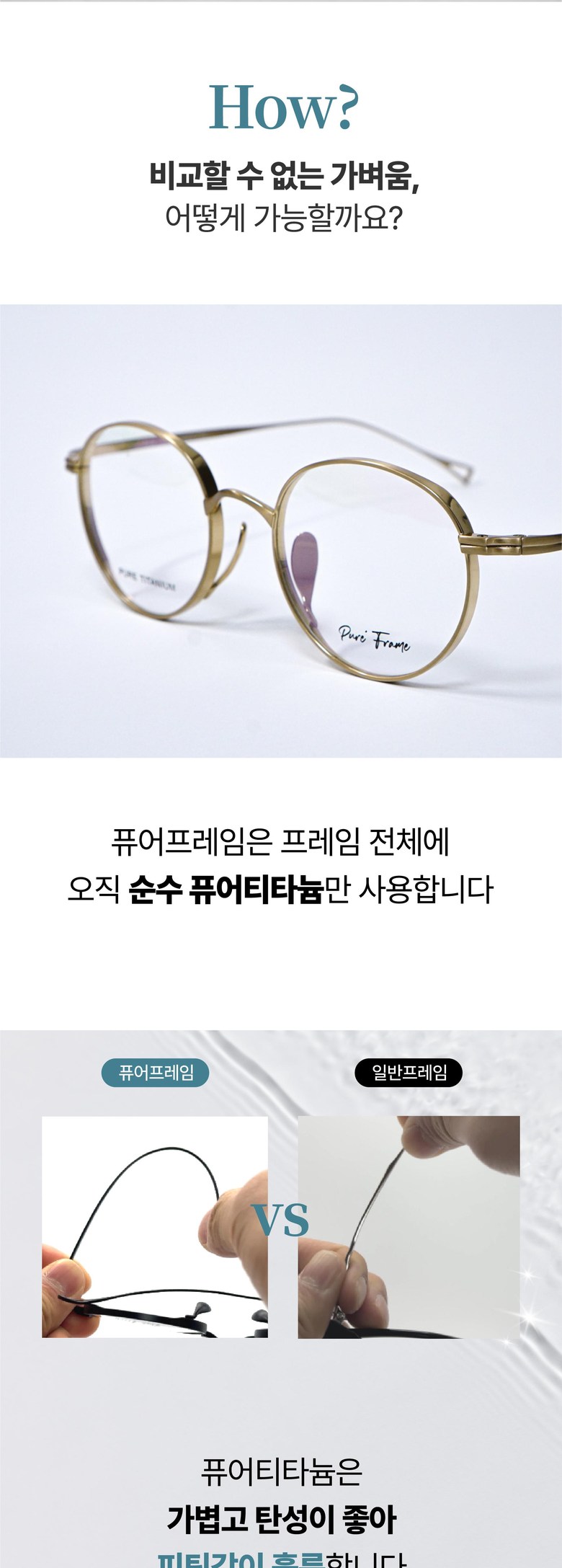 퓨어프레임 티타늄 안경테 역코받침패드 남자 여자 안경테