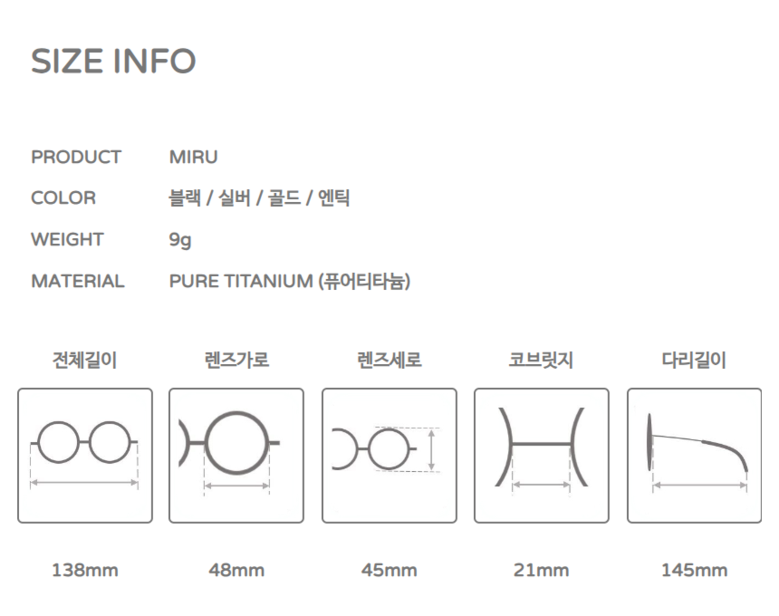 치수상품 상세페이지 참조제조자(수입자)대륙안경