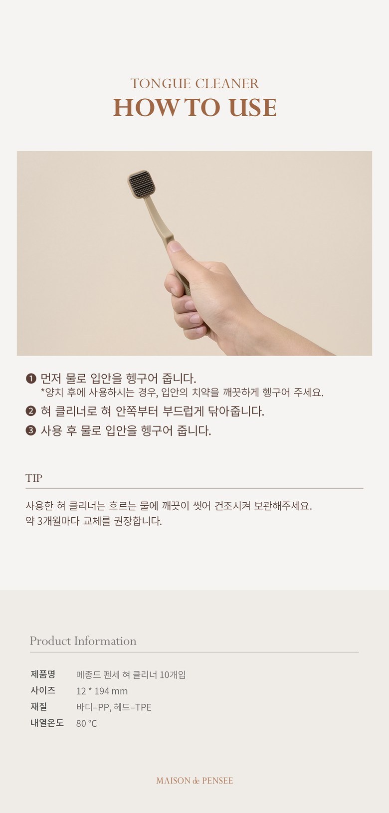 | 품명 및 모델명 | 메종드 펜세 듀얼 액션 혀클리너 10개입 | 인증/허가 사항 | 해당없음 |