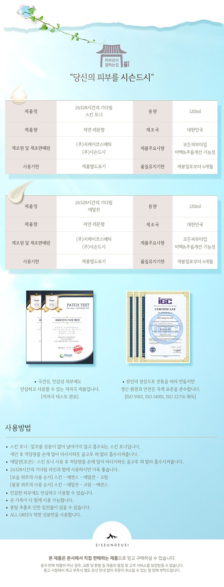 | 용량(중량) | 120ml | 제품 주요 사양 | 모든 피부타입 사용 가능 |