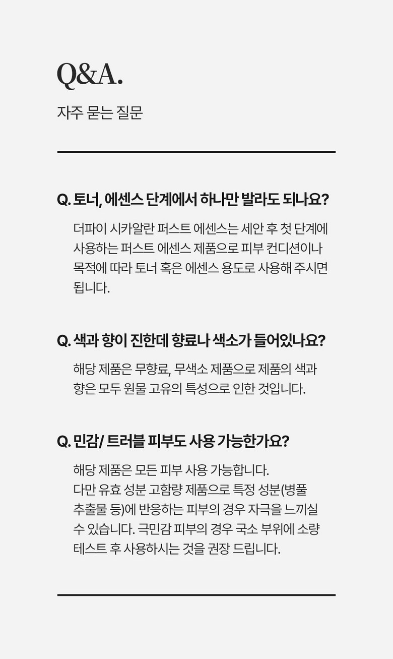 - 가격, 판매자, 교환/환불 및 배송 등 해당 상품 자체와 관련 없는 문의는 고객센터 내 1:1 문의하기를 이용해주세요.