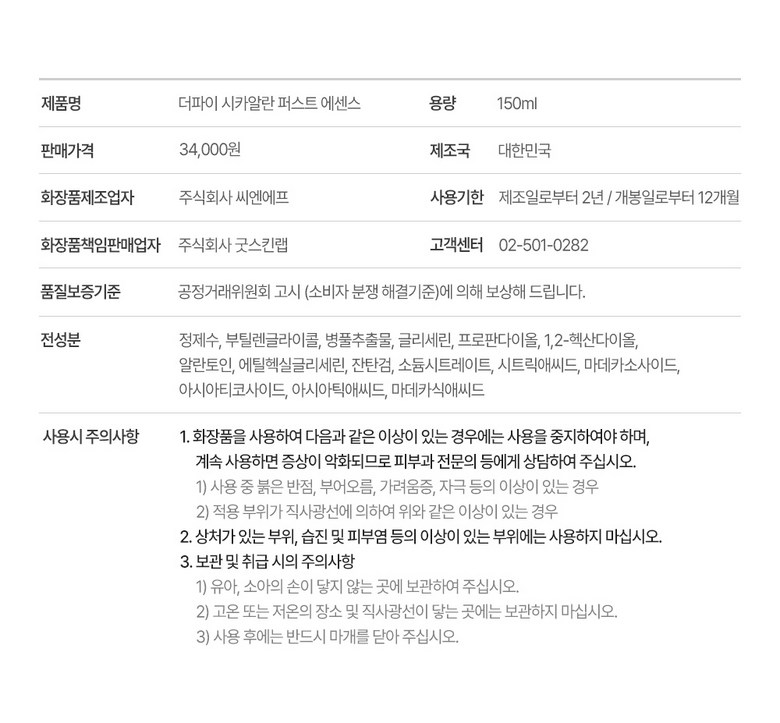 | 화장품제조업자, 화장품책임판매업자 및 맞춤형화장품판매업자 | 상품 상세페이지 참조 | 제조국 | 상품 상세페이지 참조 |