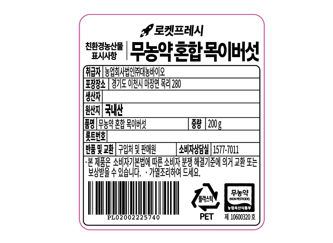 | 품목 또는 명칭 | 무농약 혼합 목이버섯 | 포장단위별 내용물의 용량(중량),수량,크기 | 200gx1개 |
