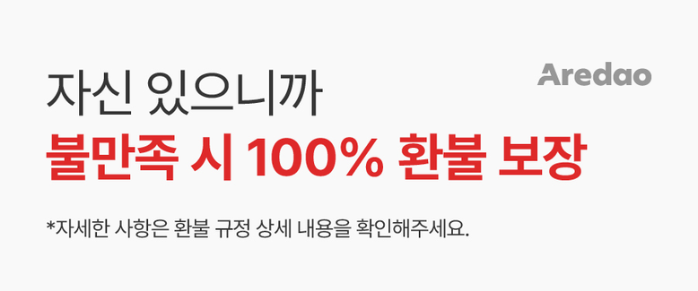 | 교환/반품 신청 기준일 | ㆍ단순변심에 의한 교환/반품은 제품 수령 후 7일 이내까지, 교환/반품 제한사항에 해당하지 않는 경우에만 가능 (배송비용과 교환/반품 비용 왕복배송비 고객부담) ㆍ상품의 내용이 표시·광고의 내용과 다른 경우에는 상품을 수령한 날부터 3개월 이내, 그 사실을 안 날 또는 알 수 있었던 날부터 |