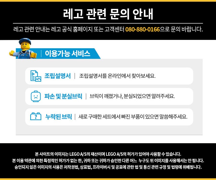 | 제조국(원산지) | 중국 | 제조자(수입자) | LEGO System A/S / 레고코리아(주) |