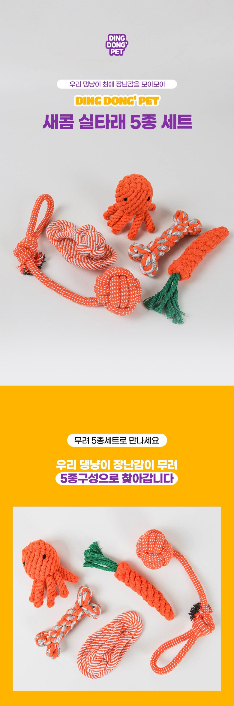 | 품명 및 모델명 | 딩동펫 강아지 장난감 새콤 실타래 5종 세트 | 인증/허가 사항 | 해당없음 |