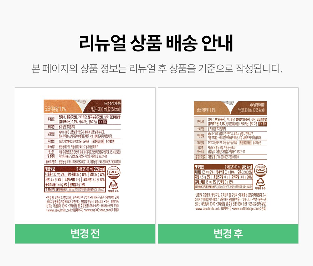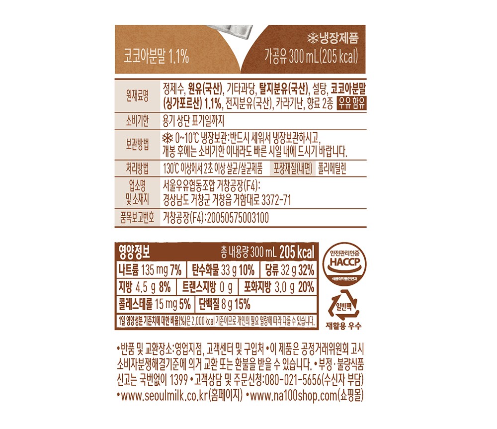 | 제품명 | 서울우유 초콜릿 | 식품의 유형 | 컨텐츠 참조 |