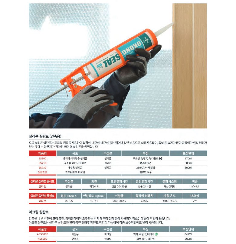 | 품목 및 제품명 | AS5500E 백색 | 용도(표백제의 경우 계열을 함께표시) 및 제형 | 틈새충진용 / 에멀선형(페이스트형) |