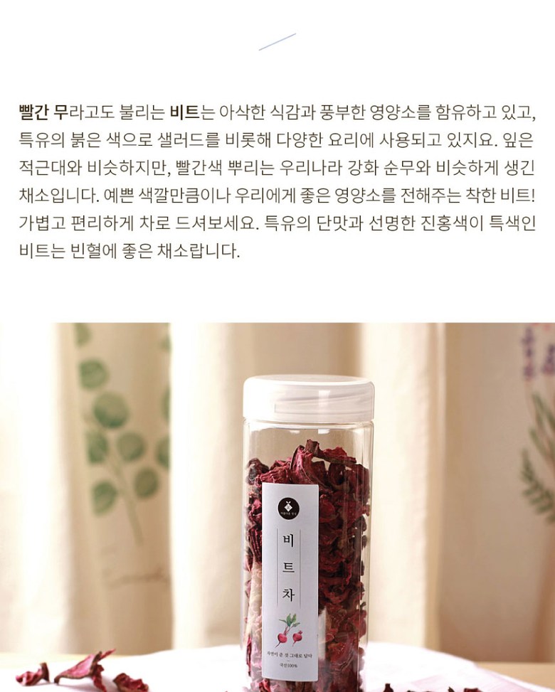 | 제품명 | 유기농 국내산 비트차 250g + 선물포장박스 | 식품의 유형 | 잎차 다류 |