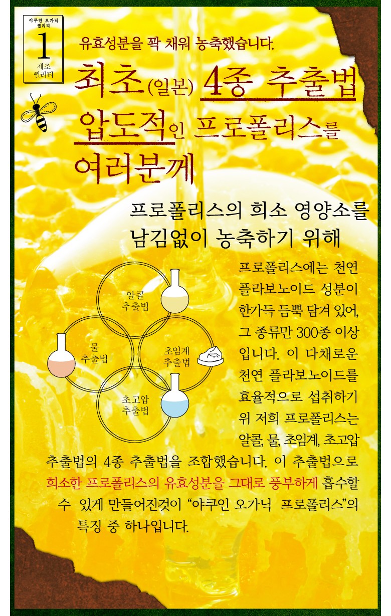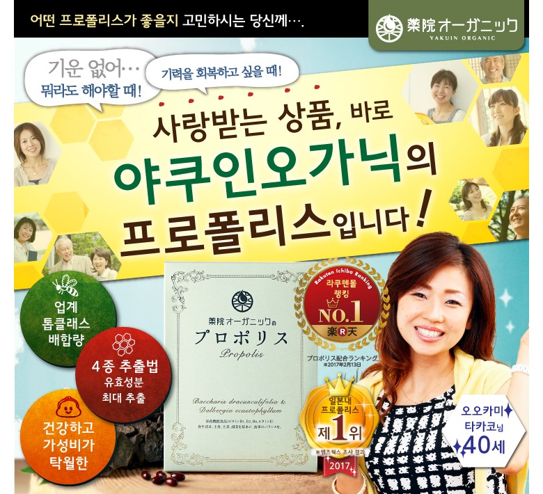 | 제품명 | 야쿠인 오가닉 프로폴리스 | 제조업소의 명칭과 소재지 | 상품 상세페이지 참조 |