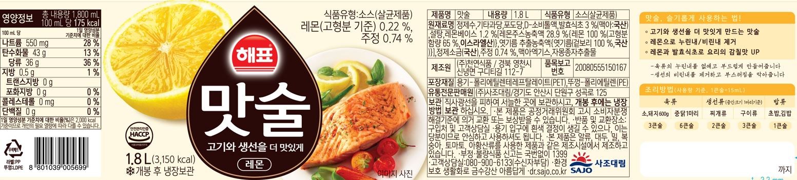 | 제품명 | 맛술 | 식품의 유형 | 소스 |