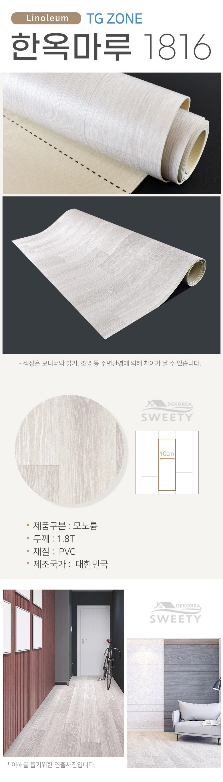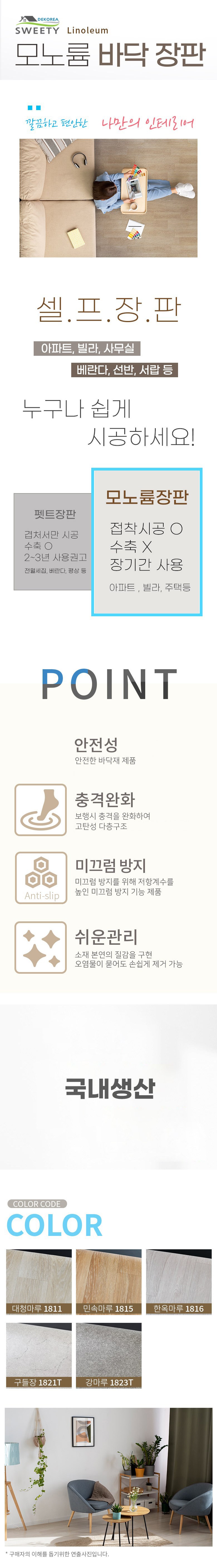 | 품명 및 모델명 | 데코리아 재사용 가능한 셀프장판 바닥재 모노륨 펫트 TGZON-1816 한옥마루 (폭)152cm (길이)2m | 인증/허가 사항 | B672H001-4004 |