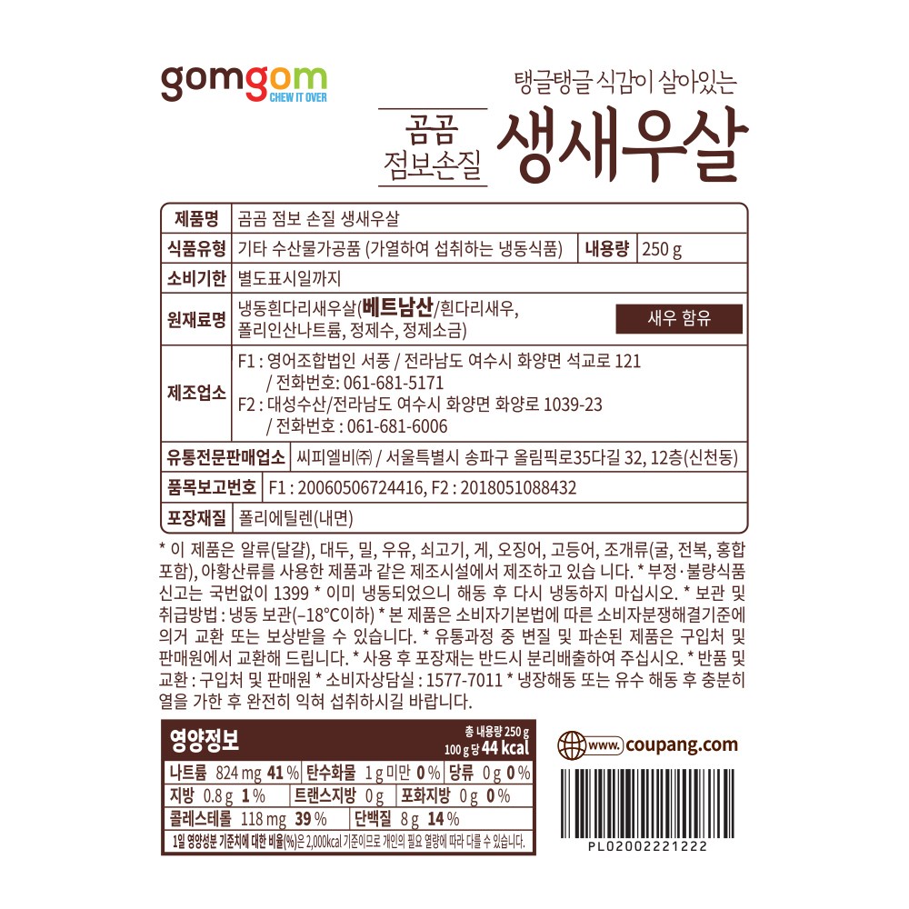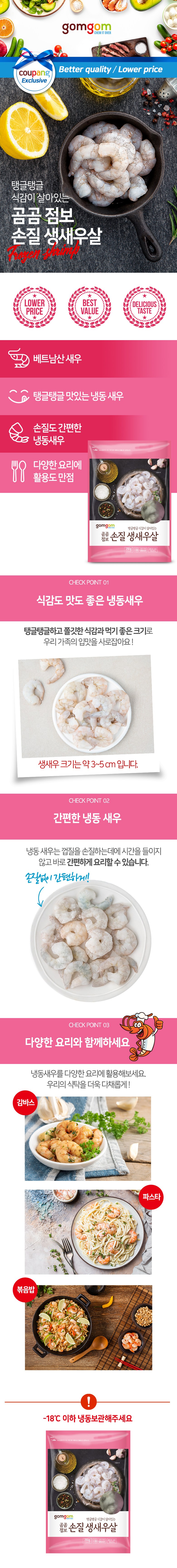 | 제품명 | 곰곰 점보 손질 생새우살 | 식품의 유형 | 컨텐츠 참조 |
