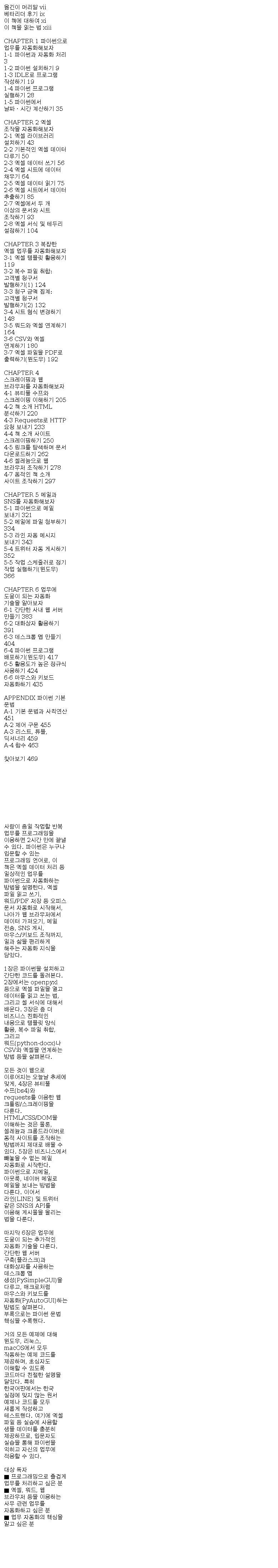 | 도서명 | 파이썬 자동화 교과서 | 저자, 출판사 | 구지라 히코즈쿠에, 제이펍 |
