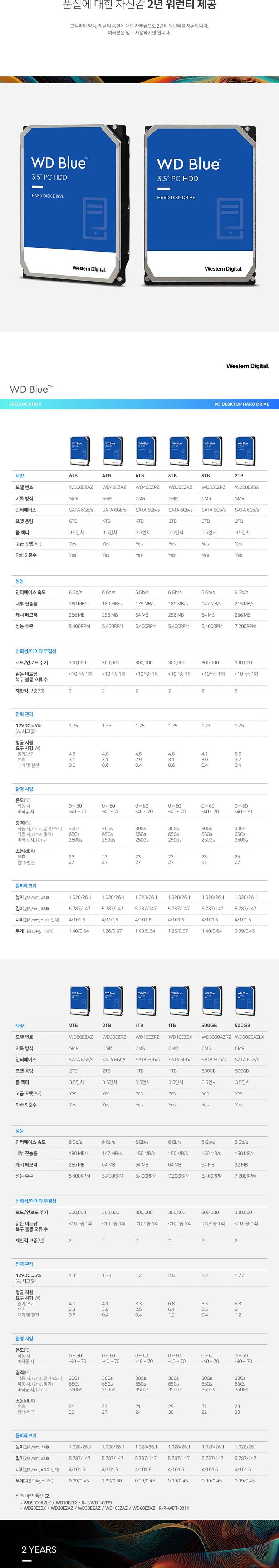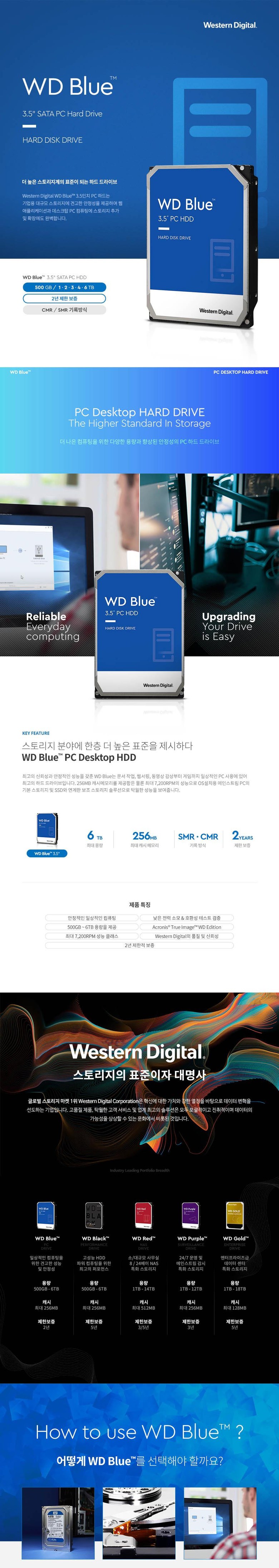 Western Digital 웨스턴 디지털 내장 HDD 8TB WD Blue PC 3.5 인치 WD80EAZZ-EC [국내 정규 대리점품]