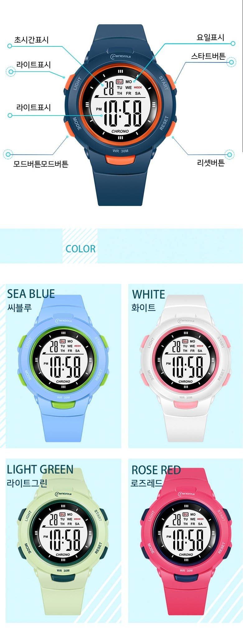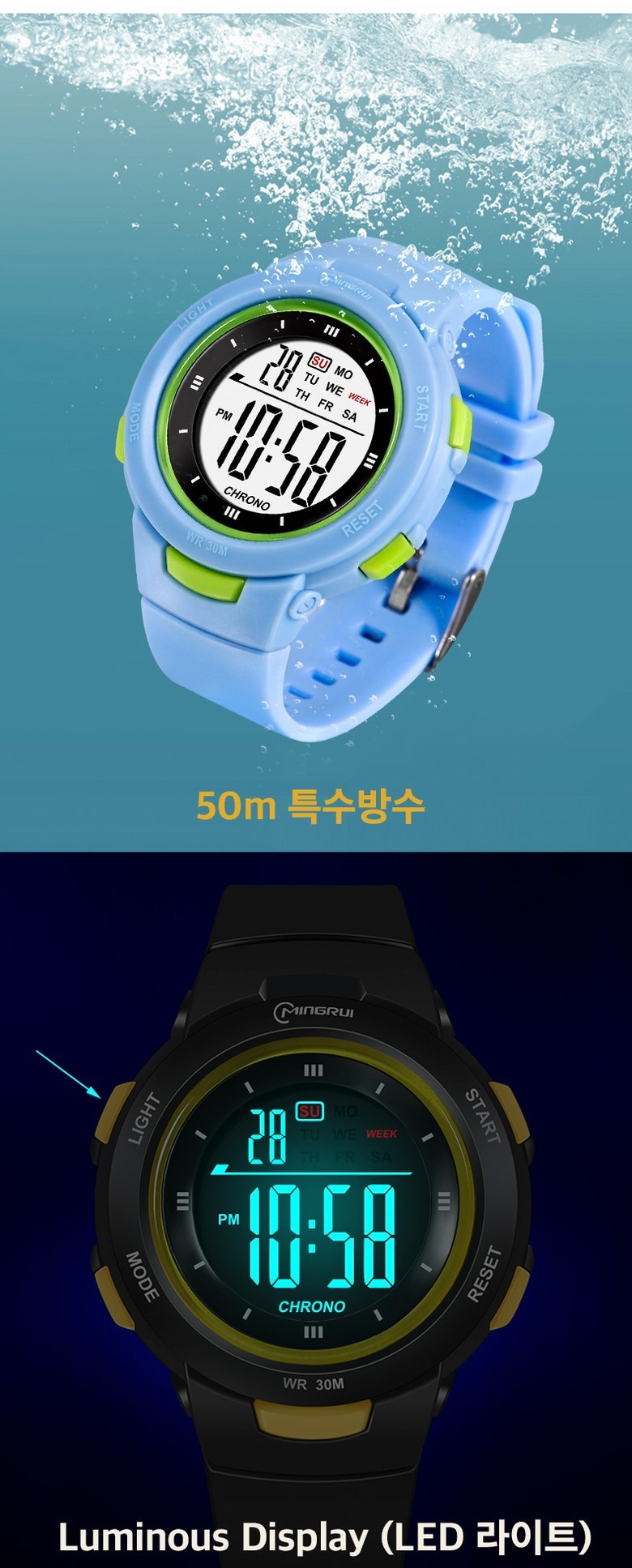 LED라이트 남여공용 학생 스포츠 디지털 우레탄 패션전자손목시계