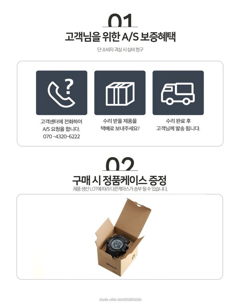 - ㆍ모니터 해상도의 차이로 인해 색상이나 이미지가 실제와 달라, 고객이 단순 변심으로 교환/반품을 무료로 요청하는 경우