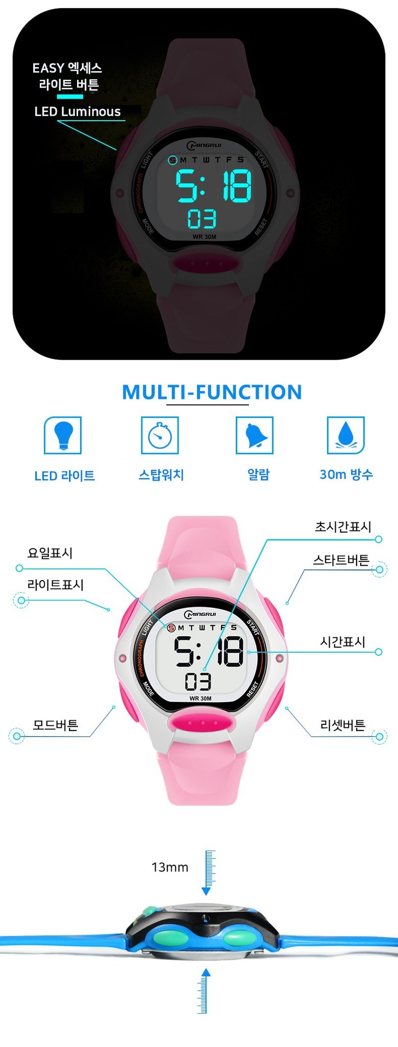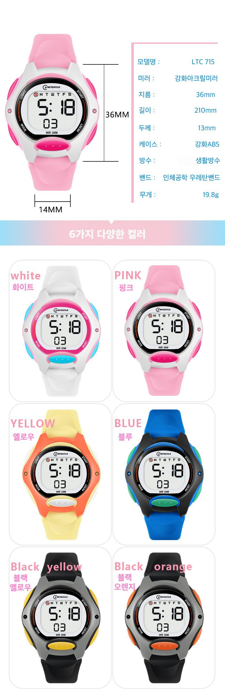 남여공용 학생 스마트칩셋 스포츠 전자 우레탄 손목시계