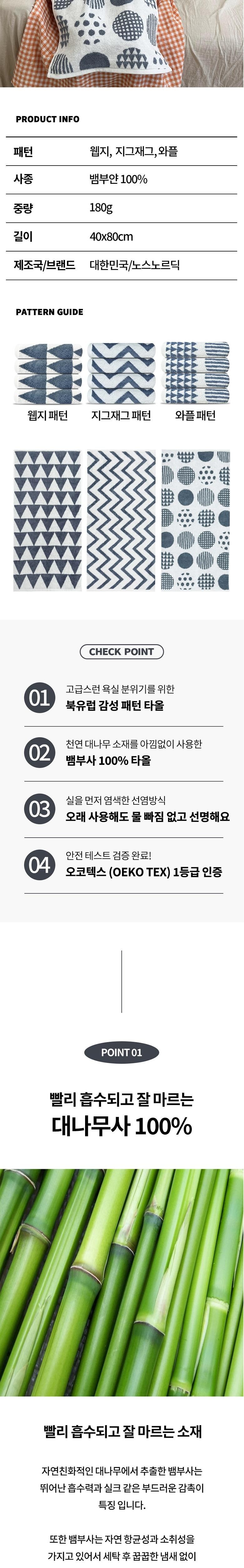 노스노르딕 고급수건 선염 뱀부타올 먼지없는 호텔수건, 와플 패턴(뱀부얀 ..., 5개
