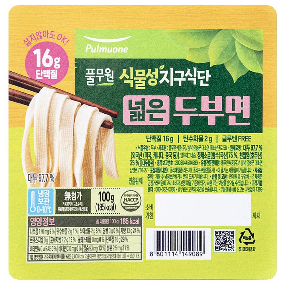 따로 삶지 않아도 활용할 수 있는 풀무원 두부면이에요. 쫄깃쫄깃한 듯 부드러운 식감이 매력적인데요. 고소하고 담백하면서, 국물이나 양념이 잘 배어드는 면이랍니다. 신선한 채소와 함께 산뜻한 샐러드를 만들어보세요. 파스타나 야끼 두부면, 로제 파스타 재료로 활용해도 좋아요.