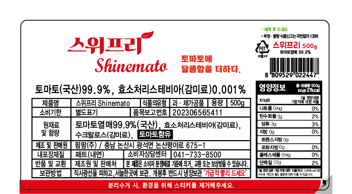 | 제품명 | 스위프리 Shinemato | 식품의 유형 | 컨텐츠 참조 |