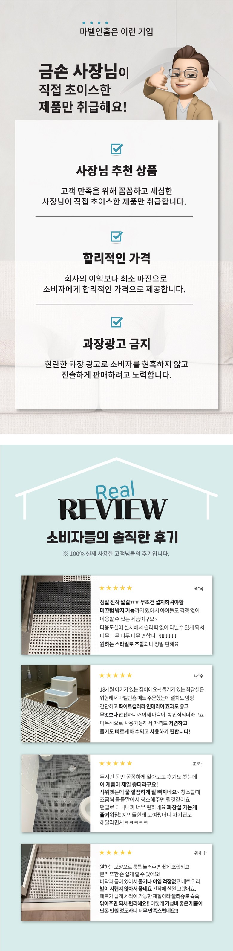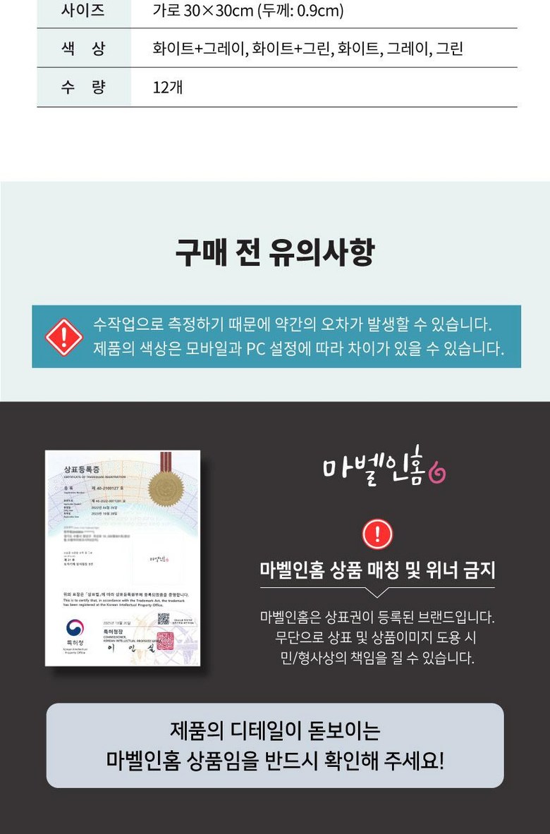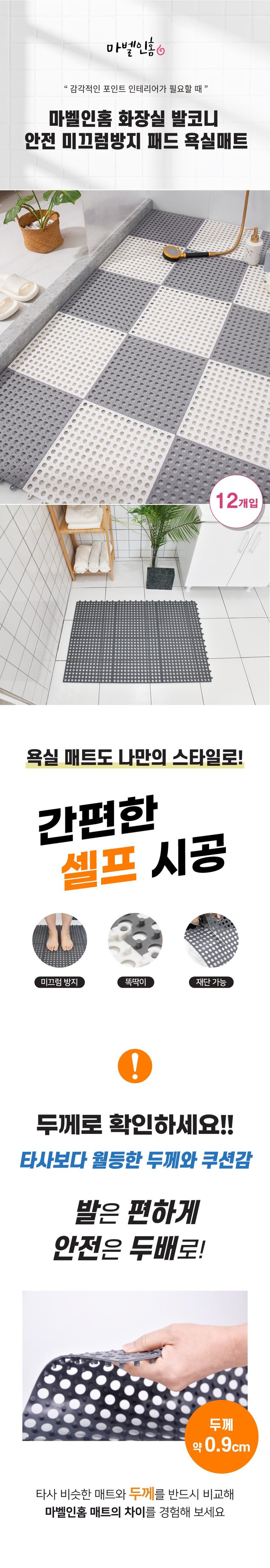 | 품명 및 모델명 | 마벨인홈 화장실 발코니 안전 미끄럼방지 패드 욕실매트 12p | 인증/허가 사항 | 해당없음 |