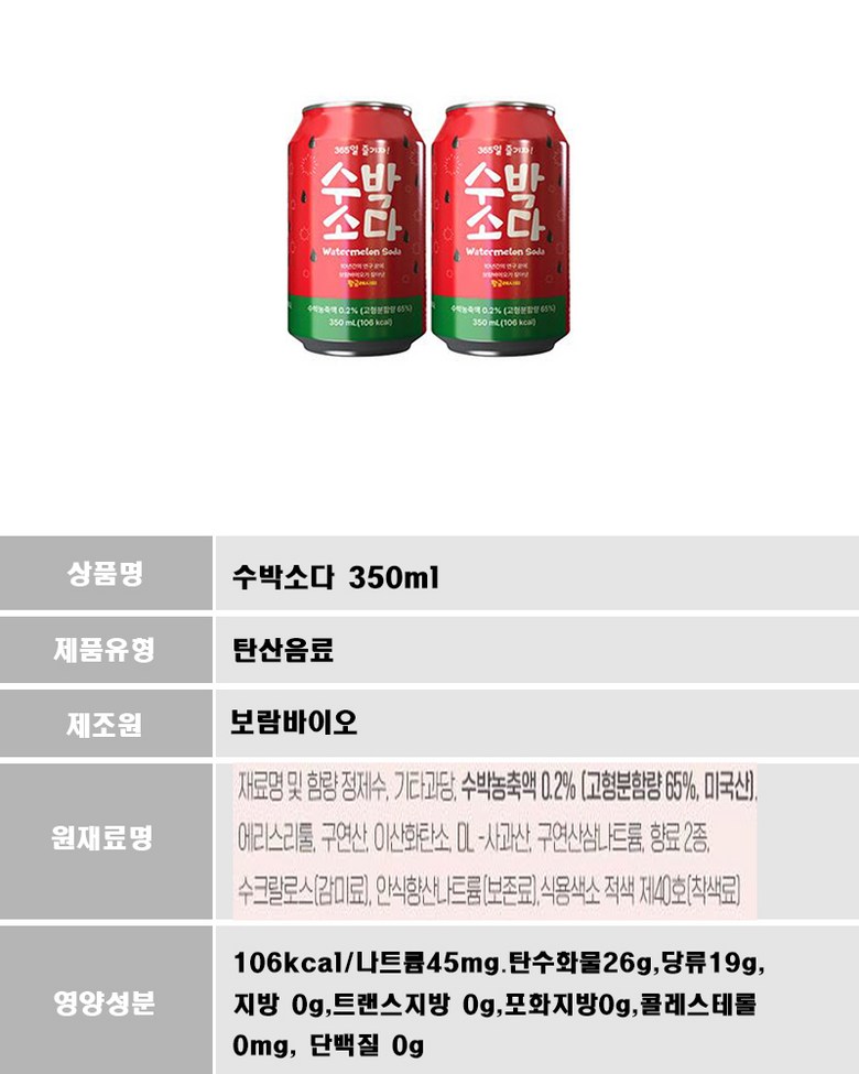 | 생산자 및 소재지 | 상품 상세페이지 참조 | 제조연월일, 소비기한 또는 품질유지기한 | 상품 상세페이지 참조 |