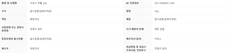 | 교환/반품 비용 (왕복비용) | 5,800원 - 단, 고객 변심의 경우에만 발생 - 도서산간 및 일부 지역 추가비용 발생 |