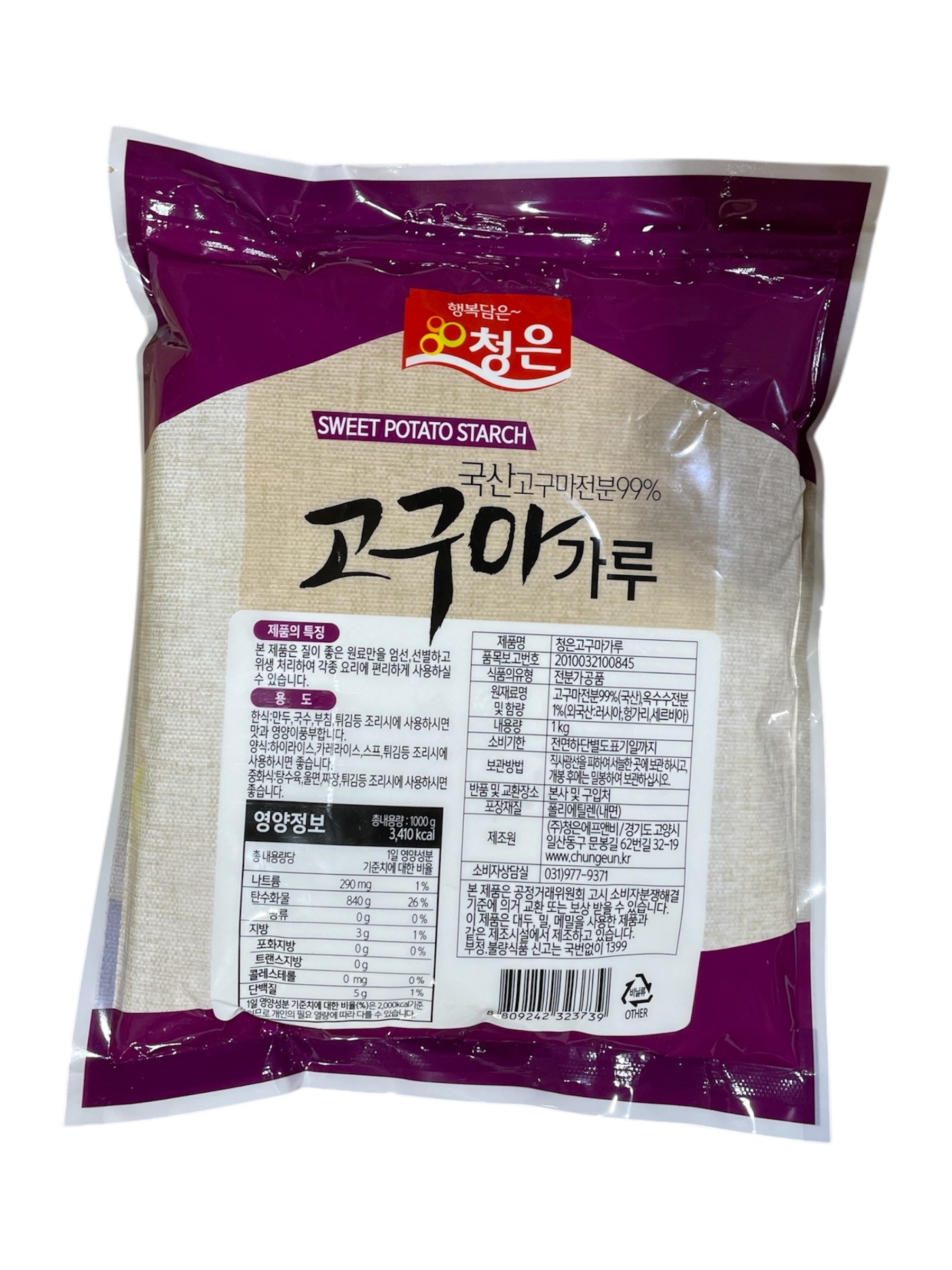 | 제품명 | 청은고구마가루 | 식품의 유형 | 컨텐츠참조 |